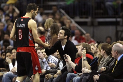 Les gunners étaient à l'O2 Arena hier soir après le match pour un clash de NBA entre New Jersey et Toronto.