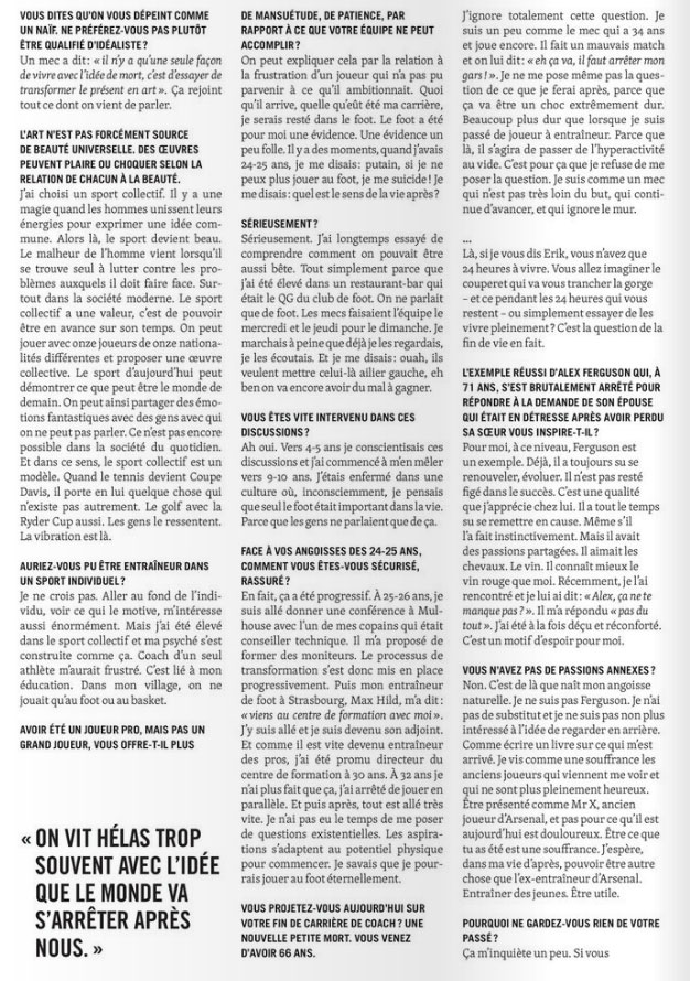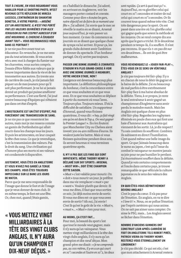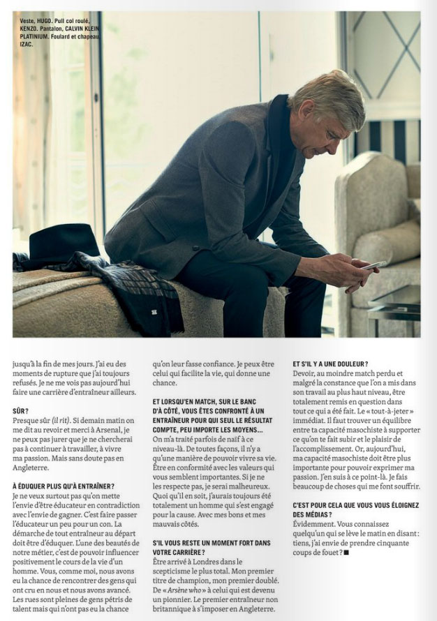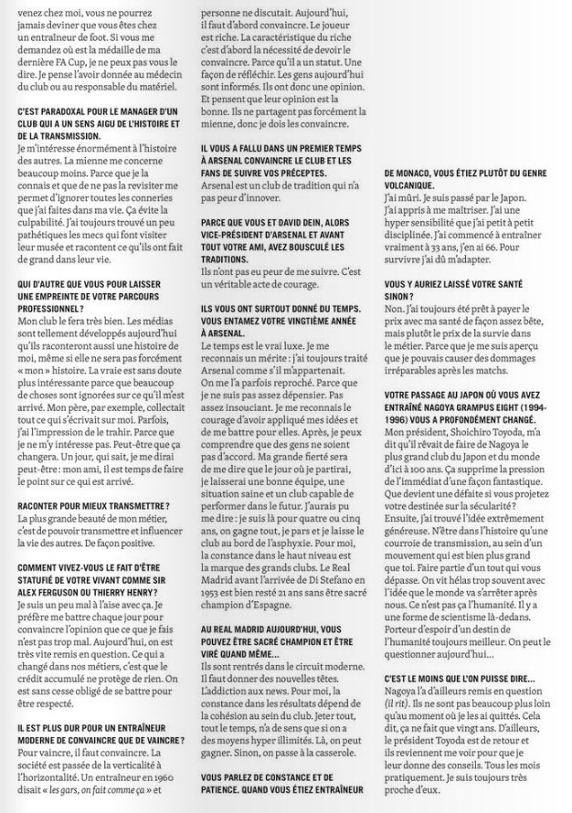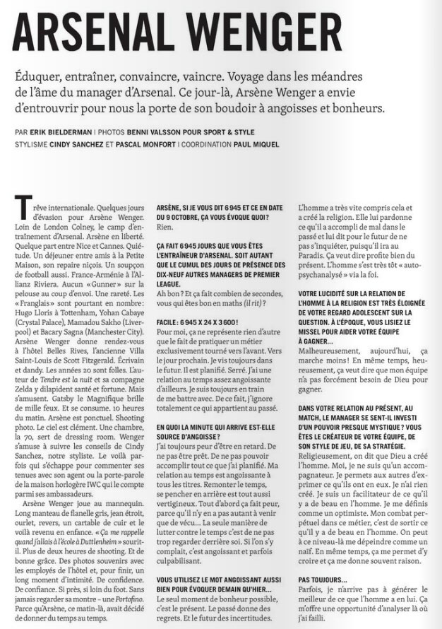 Wenger a été interviewé par Bielderman dans l'Équipe Sport&Style Magazine, et ça a donné pas mal de très belles phrases et des photos classes. Le magazine sort demain voilà déjà quelques extraits et quelques photos.