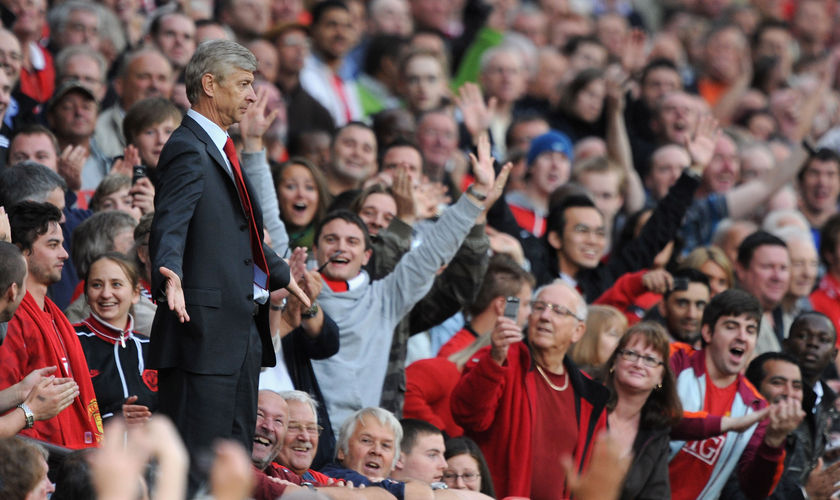 Je cherche une photo de Wenger dans les tribunes d'Old Trafford lorsqu'il a été expulsé l'an dernier ! J'en ai trouvé mais elles sont toutes mal cadrées. Je me rappelle d'une photo postée par Thearsenal qui était très réussie, et avec des contours noirs.. si vous pouvez retrouver cette photo, merci :respect: