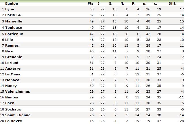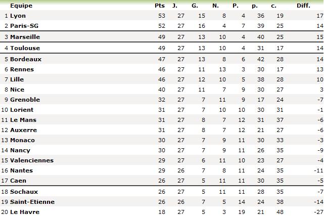 A retenir que Paris revient à 1 point de l'OL et que Lille se replace pour jouer les places Européens !