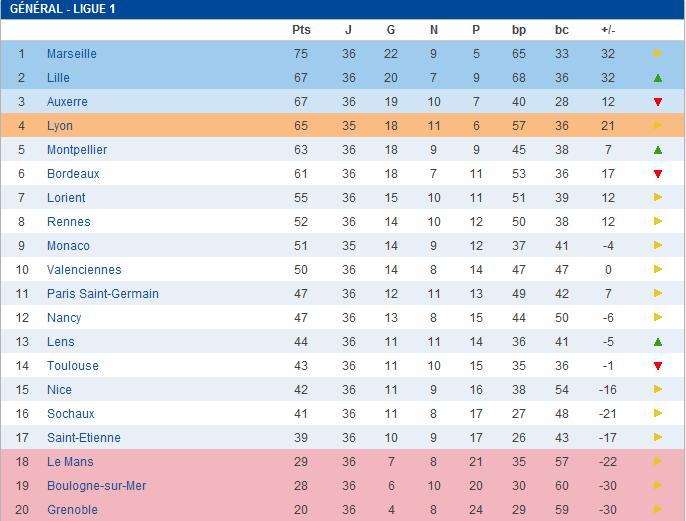 l'OL est bien parti pour finir second ! La 3ém risque de se jouer entre l'AJA et le LOSC !