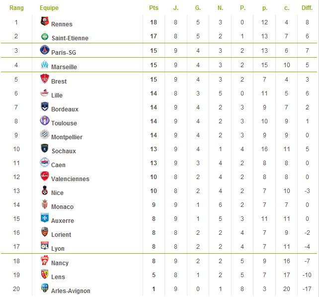 Paris ne fait pas de profit, bonne affaire pour Lille. Rennes est en train de distancer Toulouse et de recoller à Sainté.
