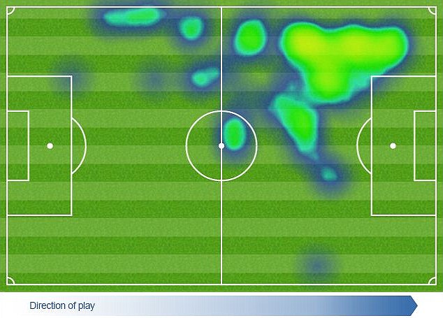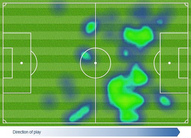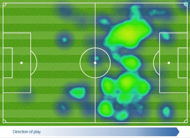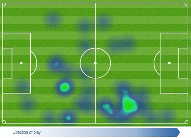 Mais c'est du vent cette histoire de heat map, si il est sur la feuille de match ailier droit (ou gauche) et qu'il se balade dans l'axe très bien, il sera là où il est le plus à l'aise, mais alors qui sera à droite ? Personne. Donc quelle sera sa solution ? Une passe en retrait ou sur l'avant centre qui est pris par 2 joueurs (minimum).