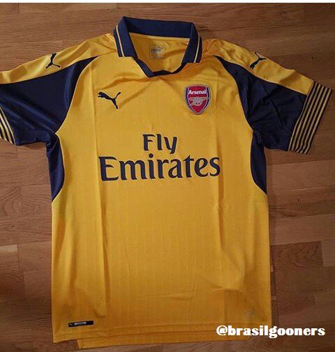 Il sera principalement jaune avec  des détails gris foncé, c'est à dire du gris foncé pour le logo Puma et le sponsor Fly Emirates. Le gris est aussi utilisé pour le col de style polo et sur le devant des manches. Le bout des manches est rayé jaune et gris. Il semblerait que des fines lignes verticales soient positionnées sur la face avant. C'est un tout nouveau template pour Puma. Le short de foot extérieur Arsenal 2017 sera gris tandis que les chaussettes Puma qui accompagneront la tenue de football extérieure seront jaunes.