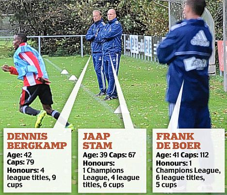 Il est 10H30 au terrain De Toekomst, et la séance d'entrainement est intense. Le coach et ancien joueur de Barcelone Frank De Boer dirige la séance attaque défense. L'ancien joueur de Man Utd, Jaap Stam demande plus d'agressivité de la part des défenseurs. L'ancien Pitbull, Edgar Davids participe aussi à la séance. Sur le terrain d'à côté, Dennis Bergkamp - aussi cool et tranquille que jamais - travaille avec les attaquants qui essayent de reprendre les centres de son ami, ancien ailier de Nottingham Forest, Bryan Roy. Le frère de Frank De Boer, Ronald, travaille avec les jeune et Marc Overmars est au repos.