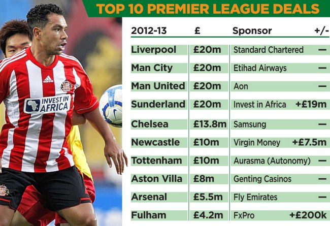 MU, City, Liverpool (AON / Etihad / Standard Chartered) - £20m