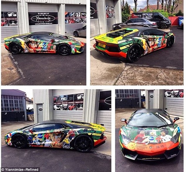 La voiture de la femme à Sagna, customisé pour la Coupe du Monde :