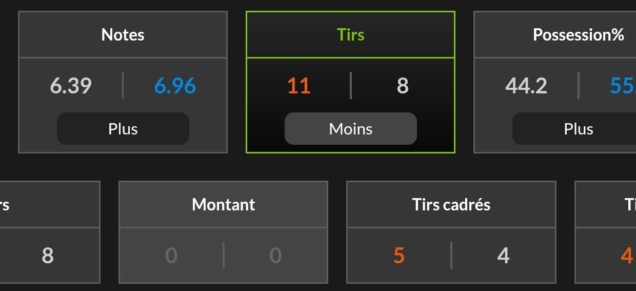 Un hold-up avec 8 tirs dont 4 cadrés pour nous (contre 11 pour eux pour 5 cadrés).