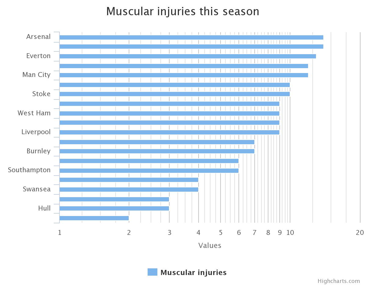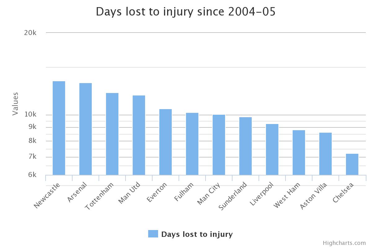 Il y a un article dans le Telegraph, qui a comparé les Clubs de Premier League en ce qui concerne les blessures et leurs durées en s'appuyant sur une étude. Ils ont aussi interrogé pas mal de monde pour comprendre les possibles raisons, souvent multiples.