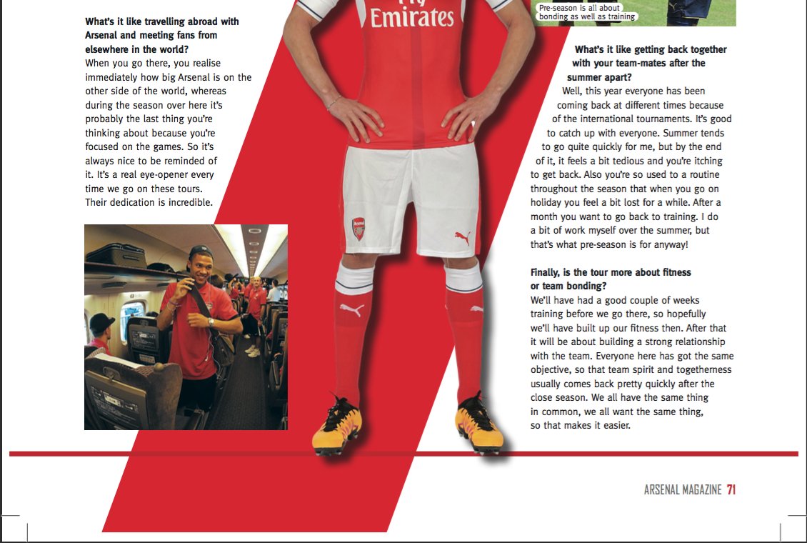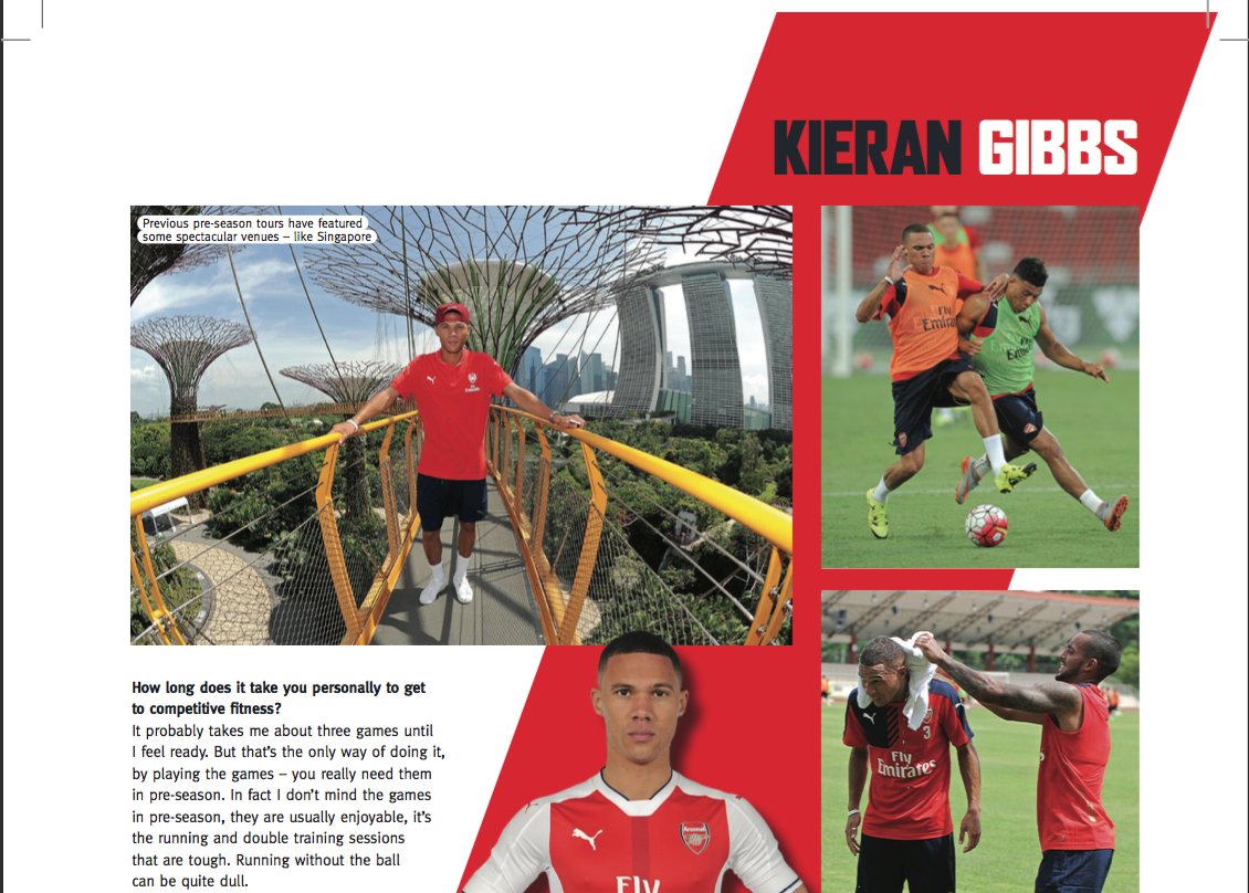 Gibbs qui parle de la pré-saison dans Arsenal Magazine