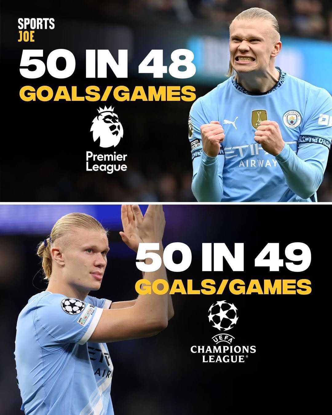 Sinon,  Haaland a explosé le records en mettant 50 buts en 49 matchs de C1